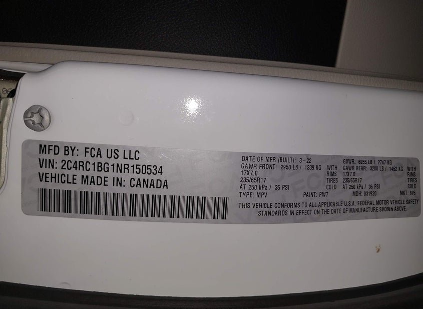 - VIN: 2C4RC1BG1NR150534