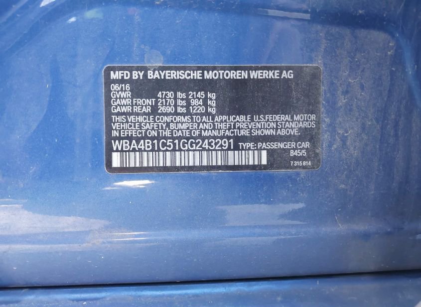 - VIN: WBA4B1C51GG243291