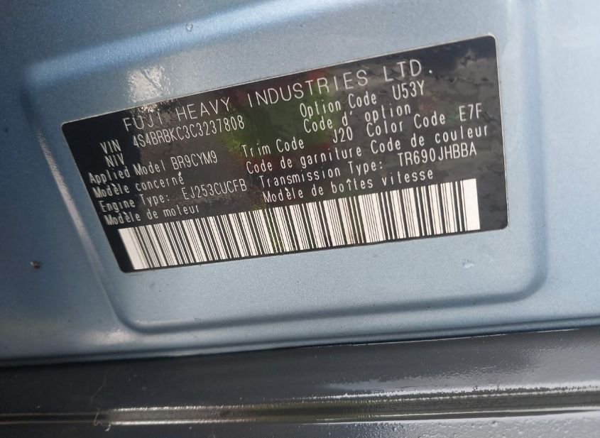 - VIN: 4S4BRBKC3C3237808