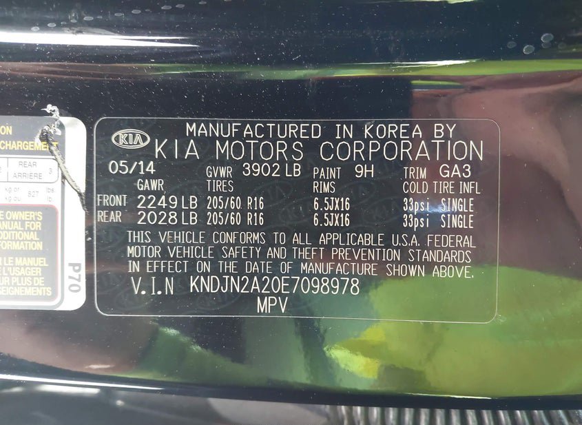 - VIN: KNDJN2A20E7098978
