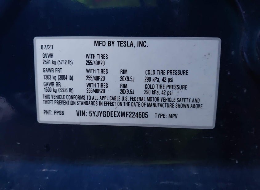 - VIN: 5YJYGDEEXMF224605