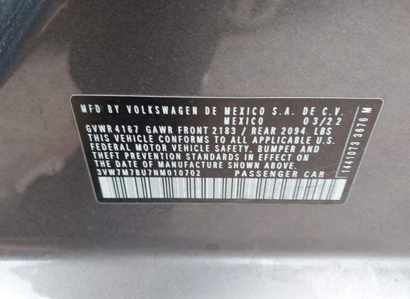 - VIN: 3VW7M7BU7NM010702