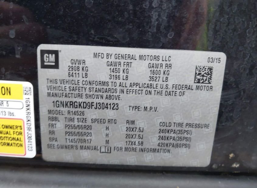 - VIN: 1GNKRGKD9FJ304123