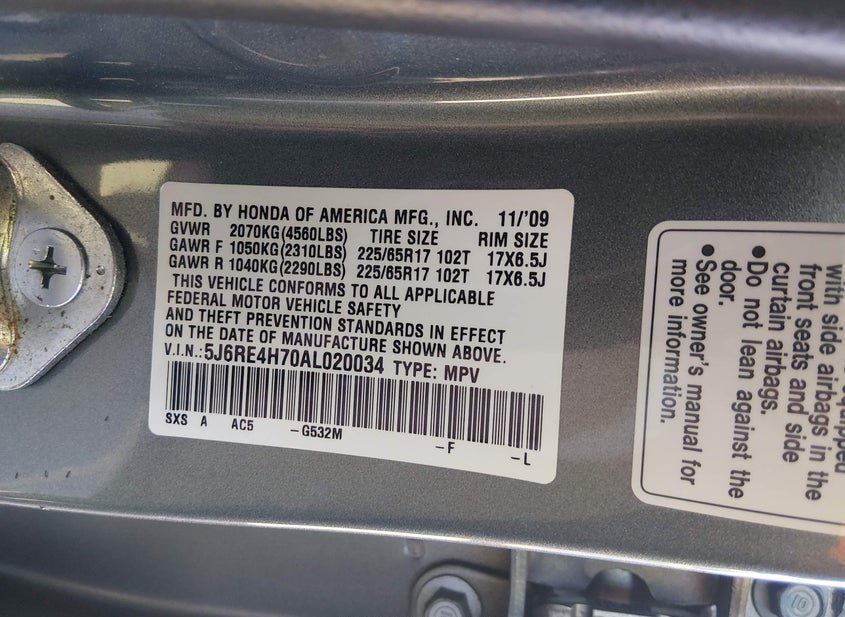 - VIN: 5J6RE4H70AL020034