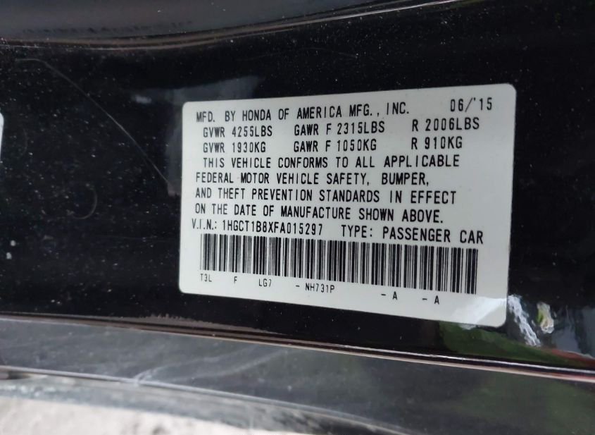 - Название лота: 2015 HONDA ACCORD EX-L