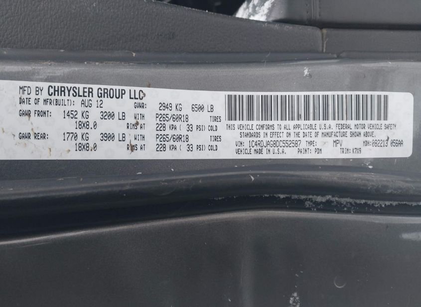 - VIN: 1C4RDJAG8DC552587