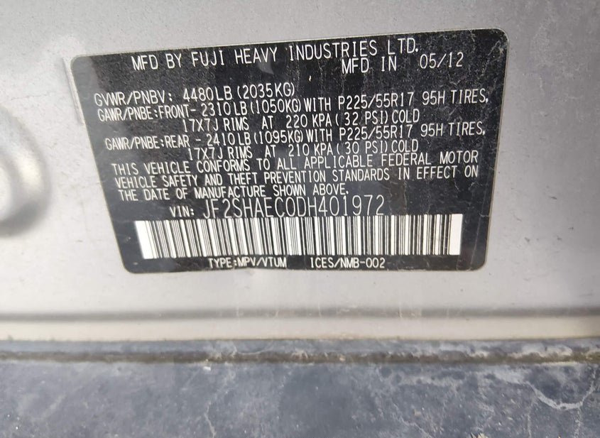 - VIN: JF2SHAEC0DH401972