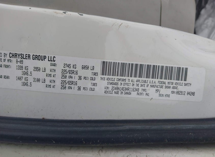 - Название лота: 2010 DODGE GRAND CARAVAN C/V