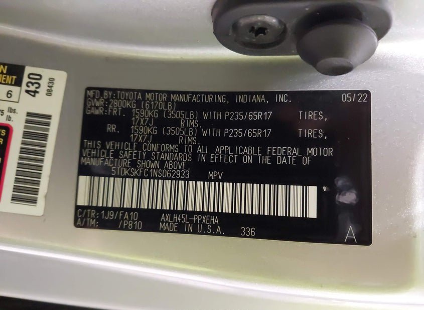 - VIN: 5TDKSKFC1NS062933