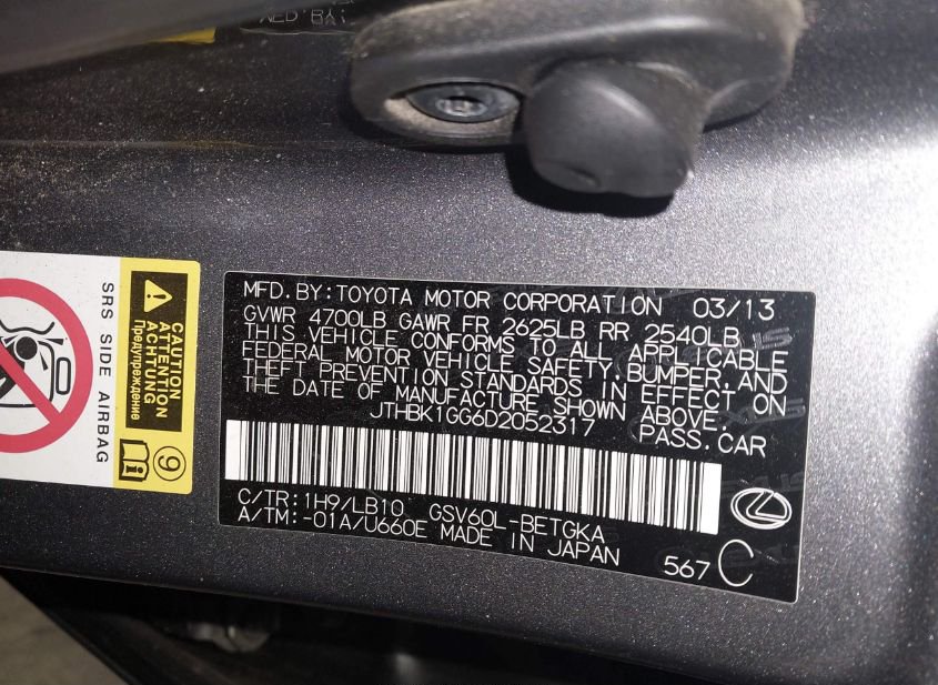- VIN: JTHBK1GG6D2052317