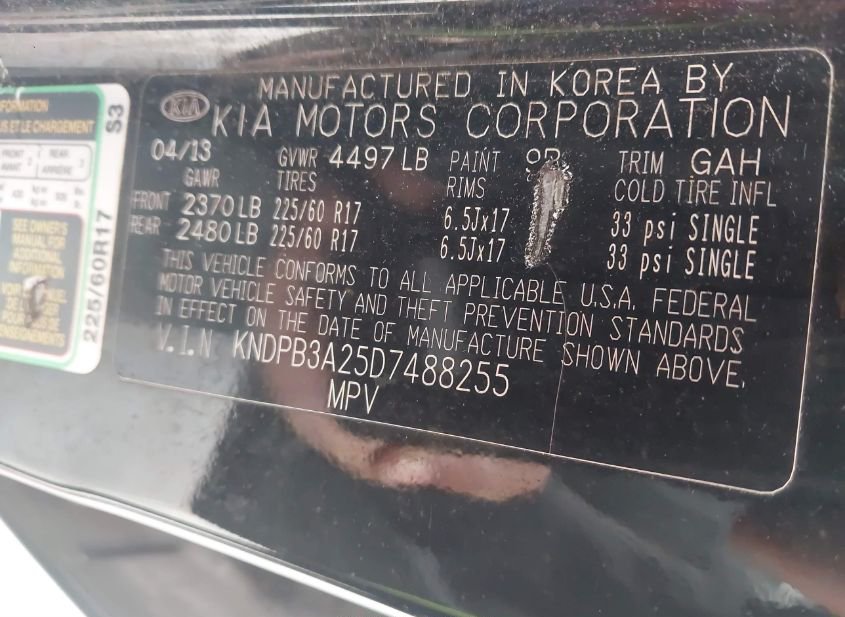 - VIN: KNDPB3A25D7488255