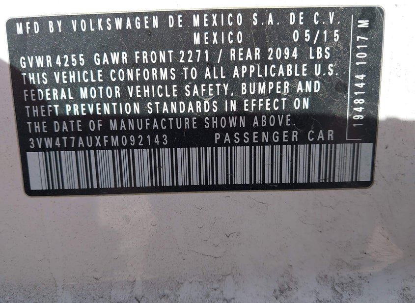 - VIN: 3VW4T7AUXFM092143