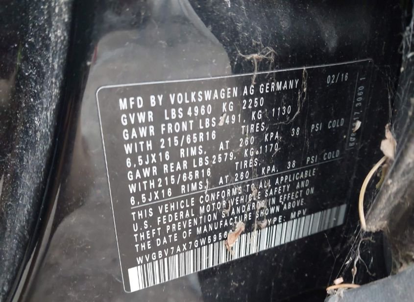 - VIN: WVGBV7AX7GW595608