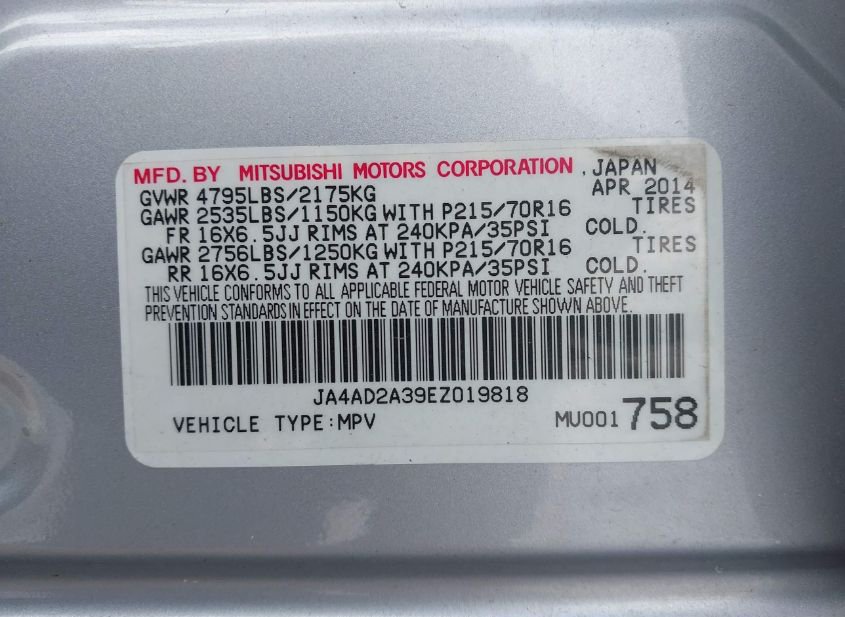 - VIN: JA4AD2A39EZ019818