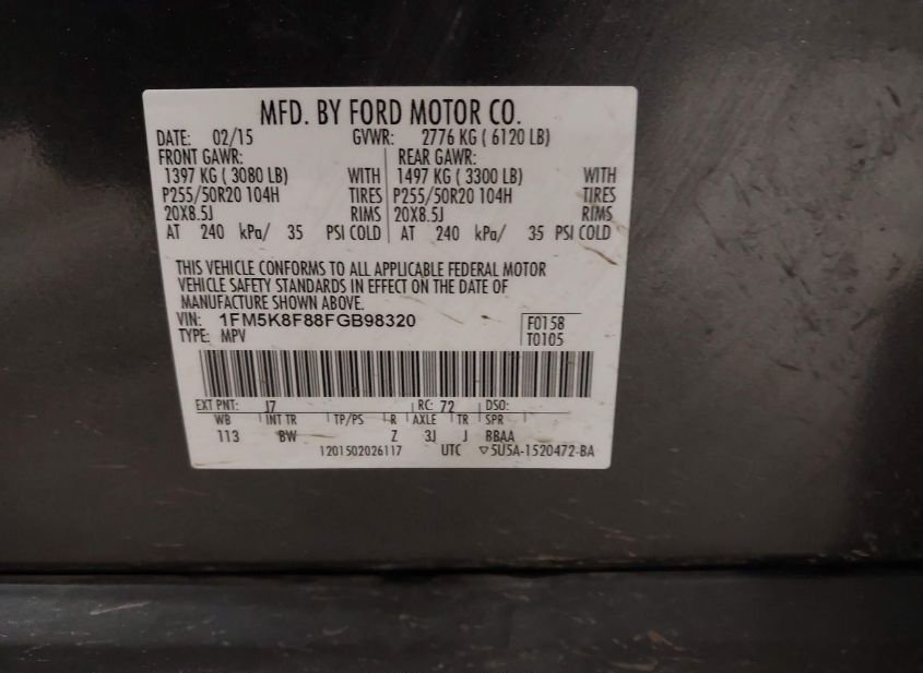 - VIN: 1FM5K8F88FGB98320