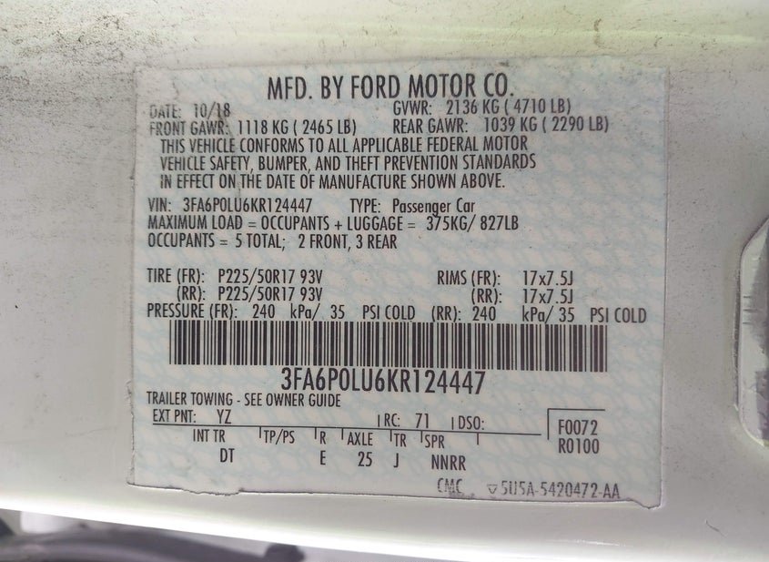 - VIN: 3FA6P0LU6KR124447