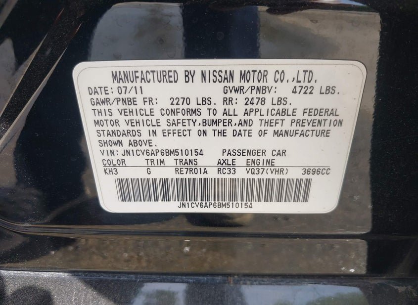 - VIN: JN1CV6AP6BM510154