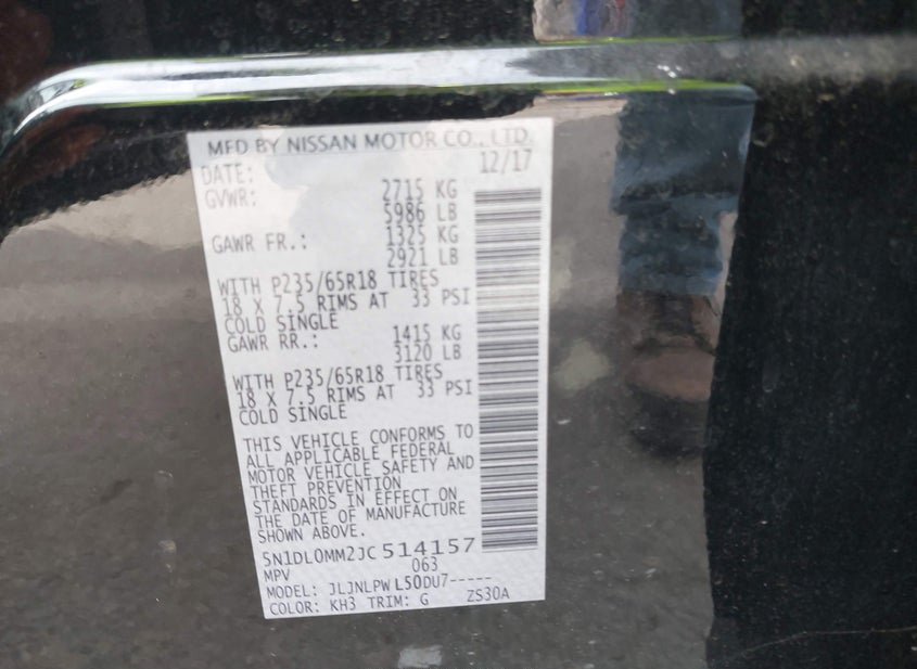 - VIN: 5N1DL0MM2JC514157