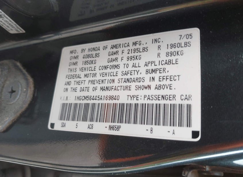 - VIN: 1HGCM56445A169840