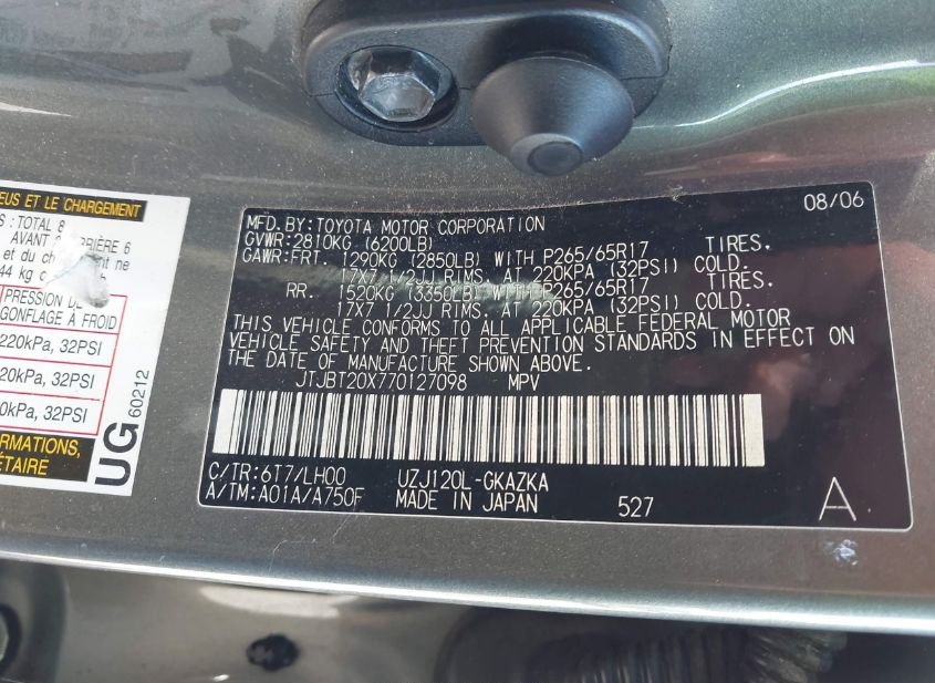 - VIN: JTJBT20X770127098