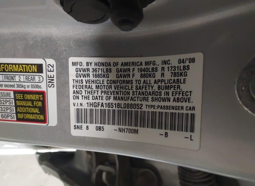 - VIN: 1HGFA16518L088052