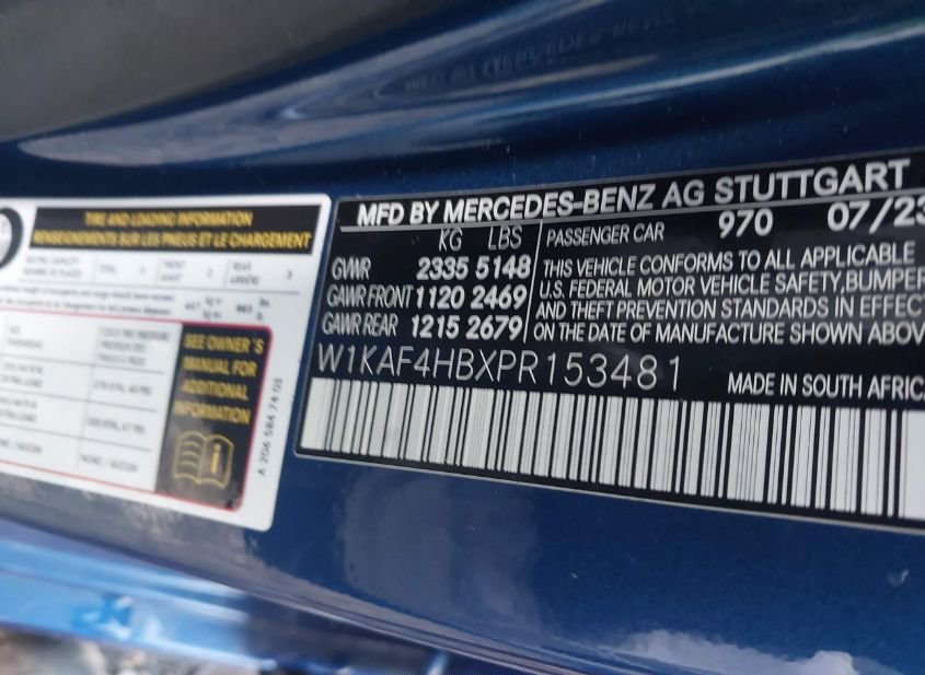 - VIN: W1KAF4HBXPR153481