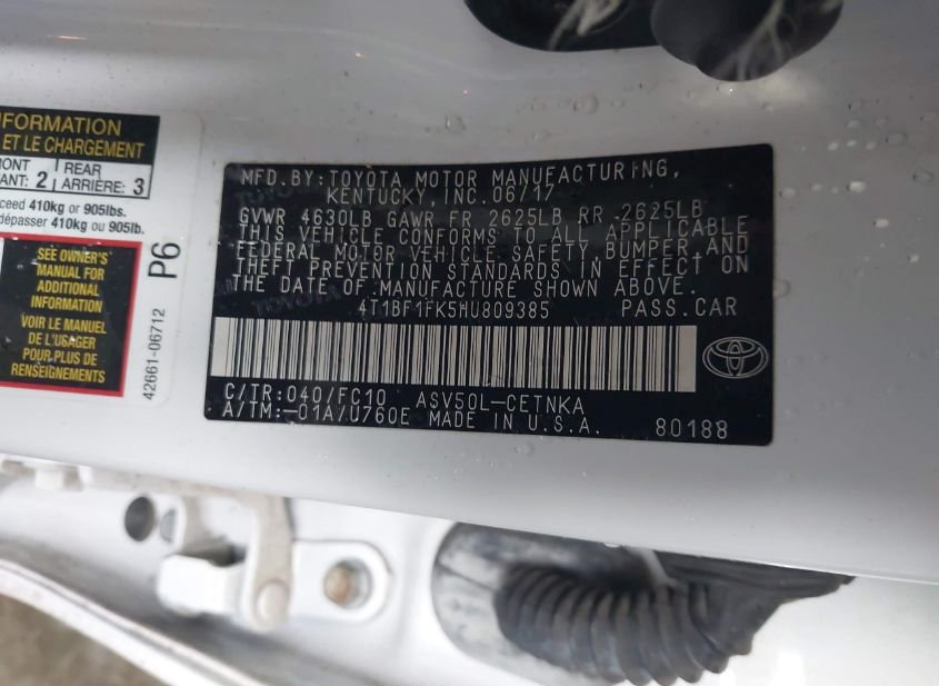 - VIN: 4T1BF1FK5HU809385