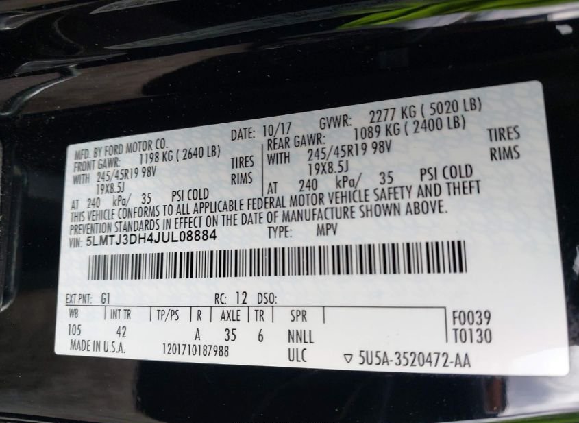 - VIN: 5LMTJ3DH4JUL08884