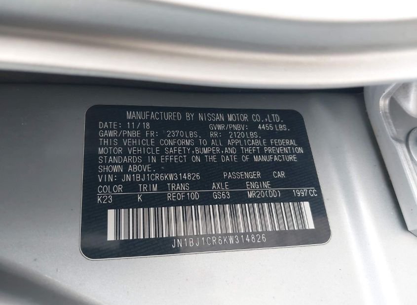 - VIN: JN1BJ1CR6KW314826