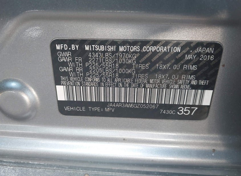 - VIN: JA4AR3AW6GZ052067