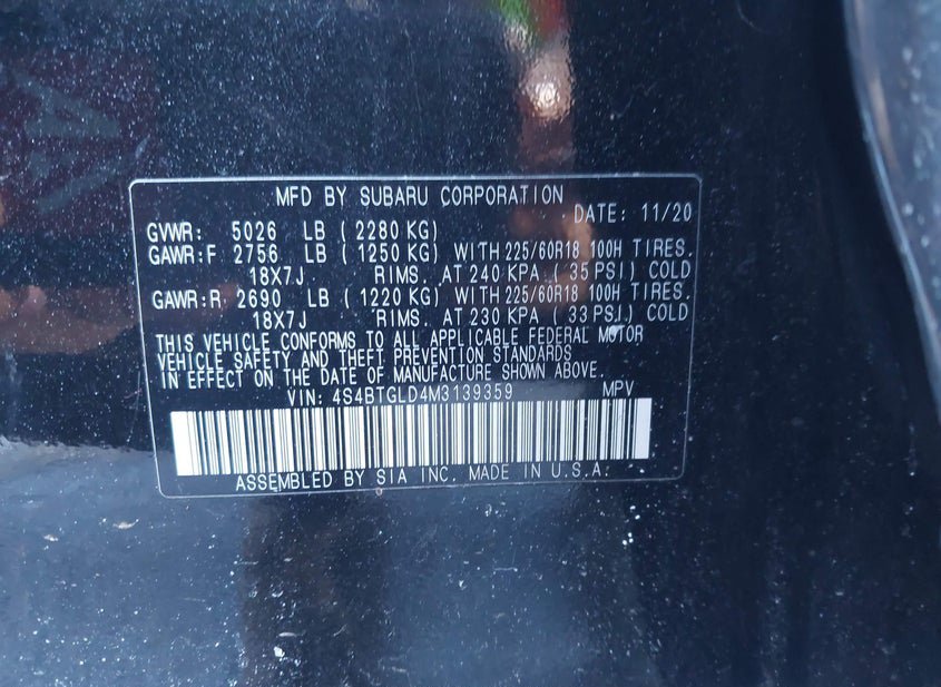 - Название лота: 2021 SUBARU OUTBACK ONYX EDITION XT