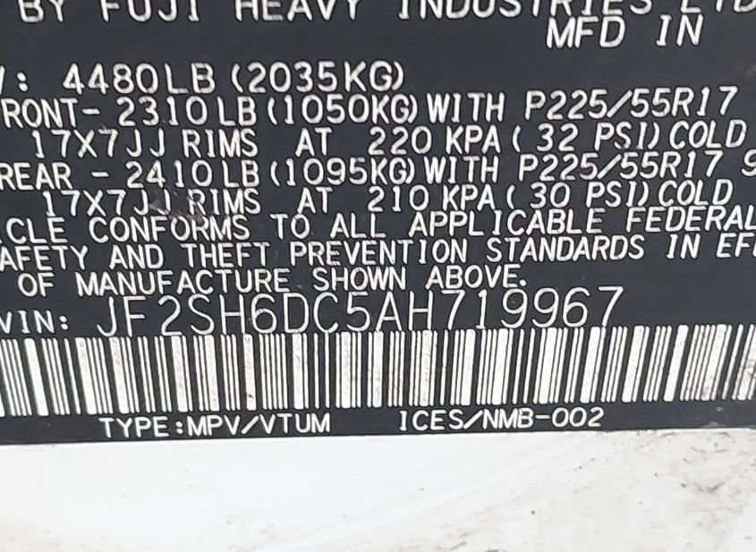 - VIN: JF2SH6DC5AH719967