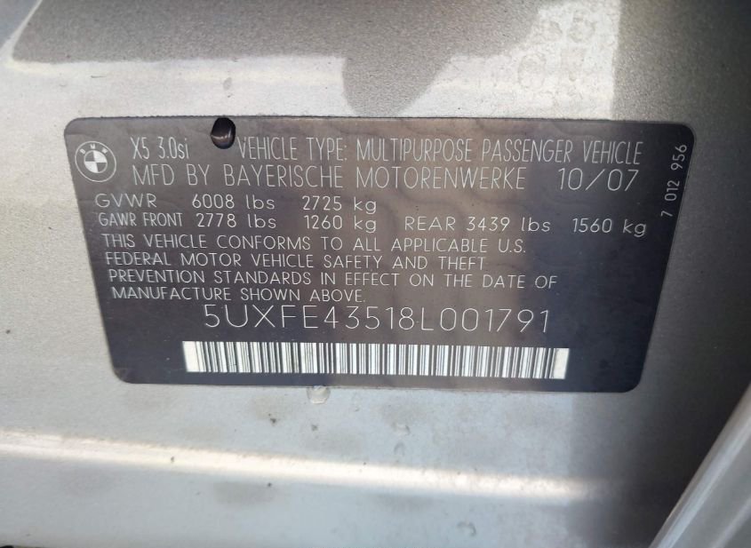 - Название лота: 2008 BMW X5 3.0SI