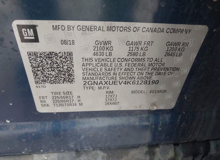 - VIN: 2GNAXUEV4K6128190