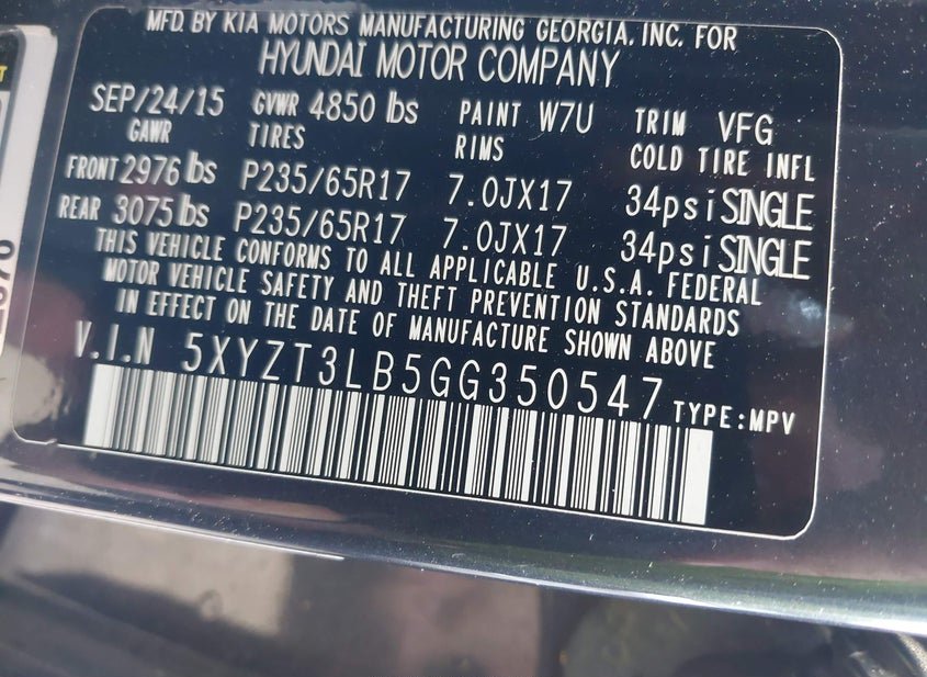 - VIN: 5XYZT3LB5GG350547