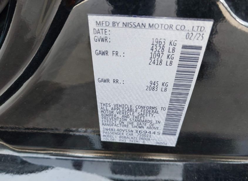 - VIN: 1N4BL4DV5SN369445
