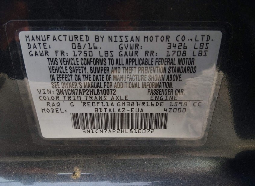 - VIN: 3N1CN7AP2HL810072