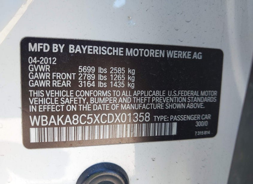 - VIN: WBAKA8C5XCDX01358