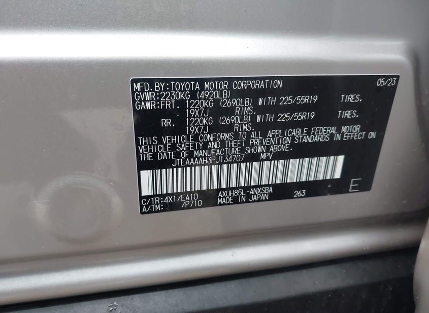 - VIN: JTEAAAAH3PJ134707