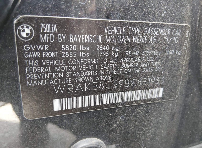 - Название лота: 2011 BMW 750LI