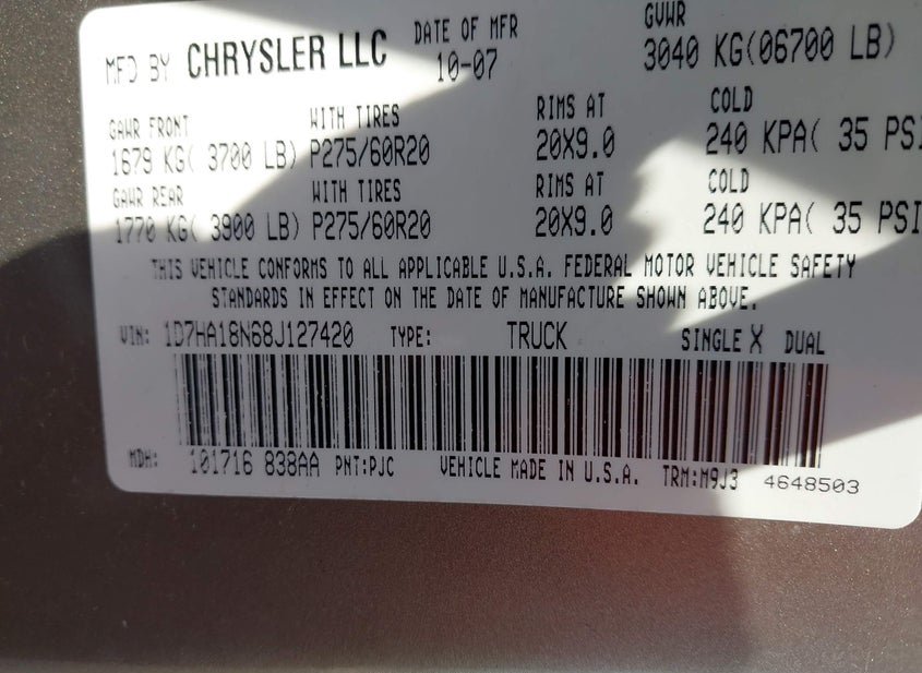 - VIN: 1D7HA18N68J127420