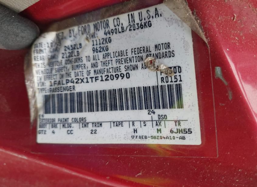 - VIN: 1FALP42X1TF120990