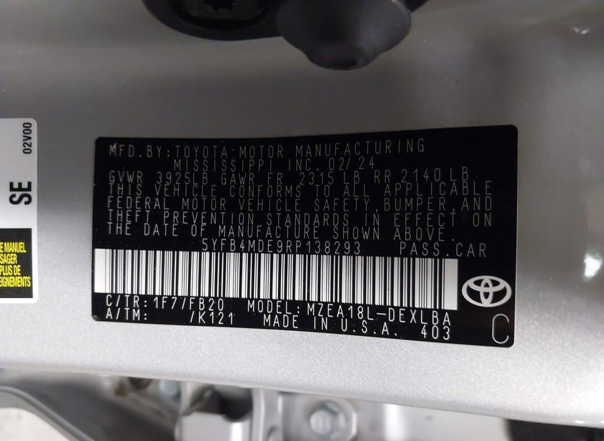 - Название лота: 2024 TOYOTA COROLLA LE