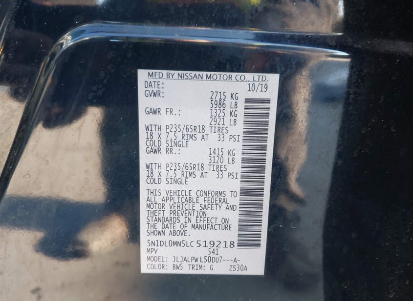 - VIN: 5N1DL0MN5LC519218