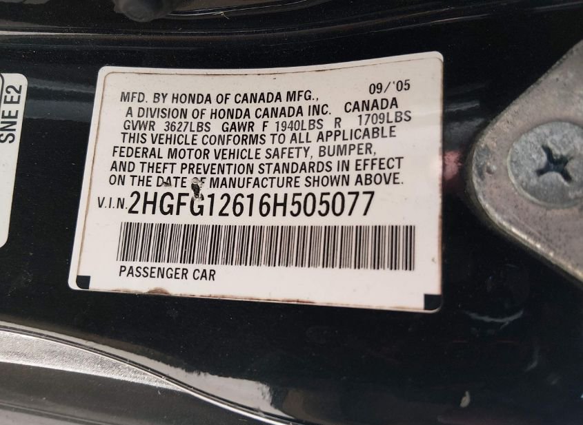 - VIN: 2HGFG12616H505077