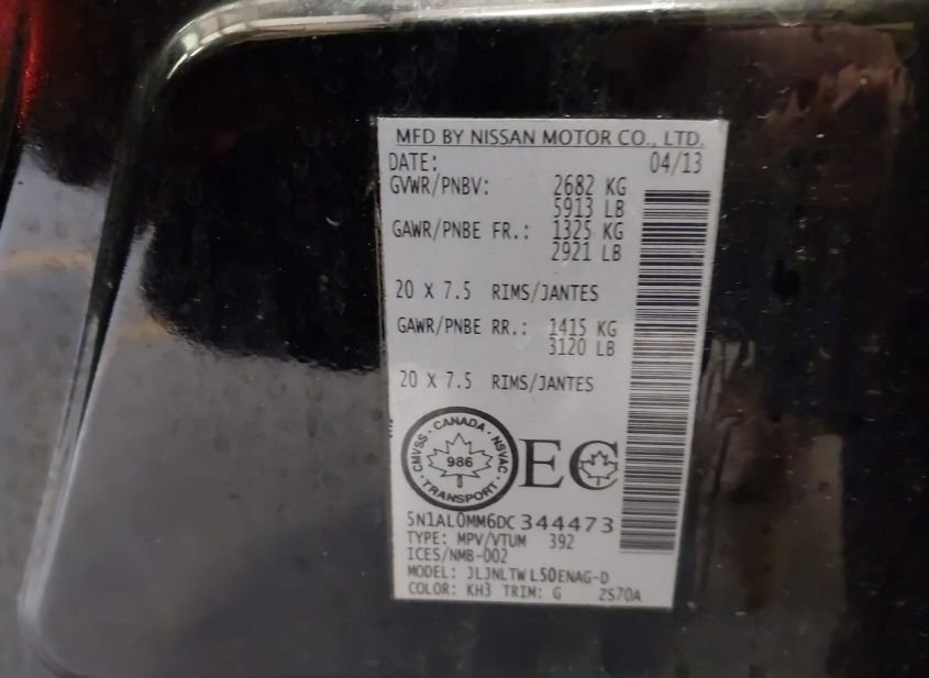 - VIN: 5N1AL0MM6DC344473