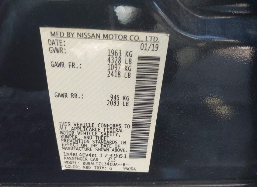 - VIN: 1N4BL4EV4KC173961