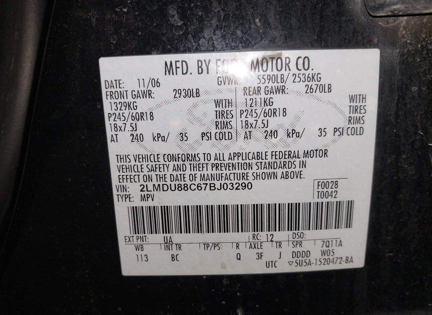 - VIN: 2LMDU88C67BJ03290