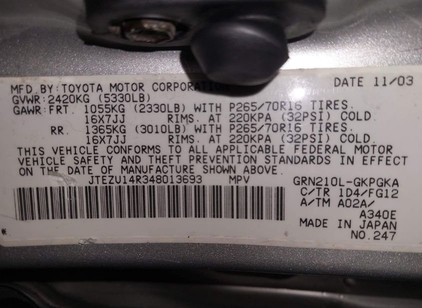 - Название лота: 2004 TOYOTA 4RUNNER SR5 V6