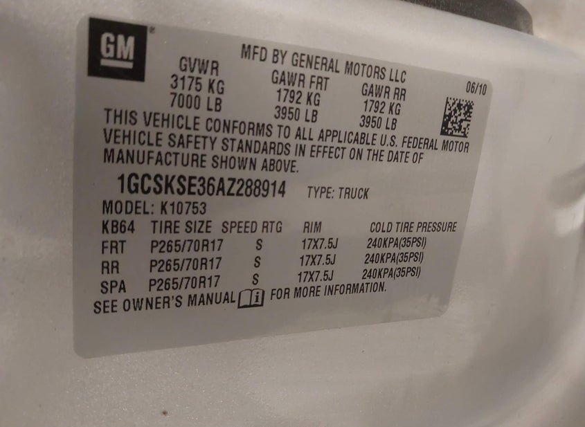 - VIN: 1GCSKSE36AZ288914